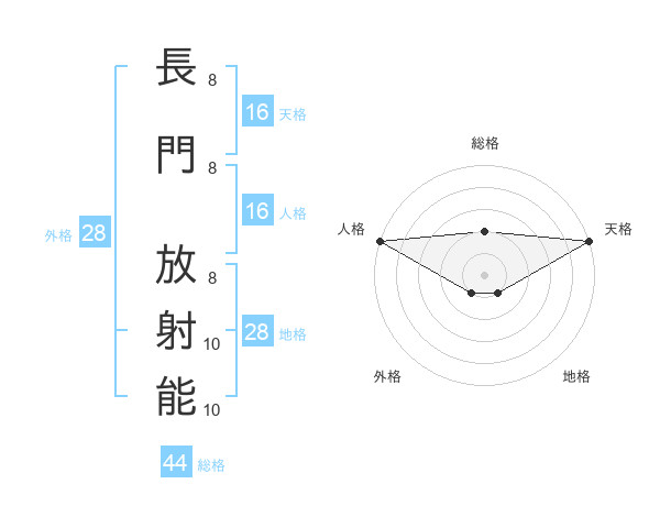 長門 放射能さんの総格は44画の2点!