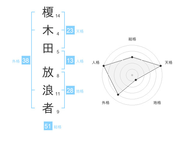榎木田 放浪者さんを姓名の画数から五運を鑑定