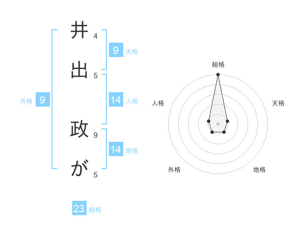 井出 政がさんの総格は23画の5点!