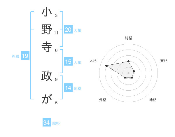 小野寺 政がさんの天格は20画の1点!