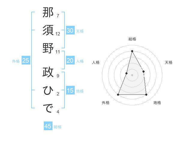 那須野 政ひでさんの総格は45画の4点!