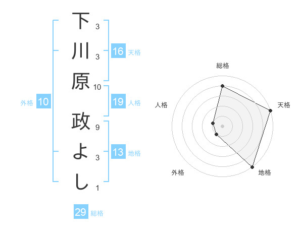 下川原 政よしさんを姓名の画数から五運を鑑定