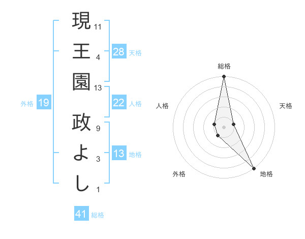 現王園 政よしさんの総格は41画の5点!
