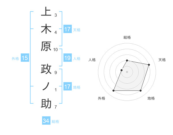 上木原 政ノ助さんを姓名の画数から五運を鑑定