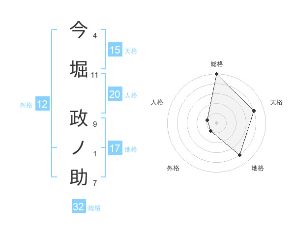 今堀 政ノ助さんを姓名の画数から五運を鑑定