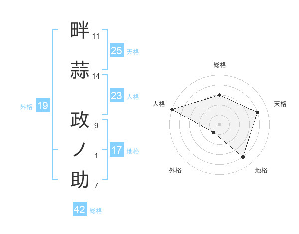 畔蒜 政ノ助さんの地格は17画の4点!