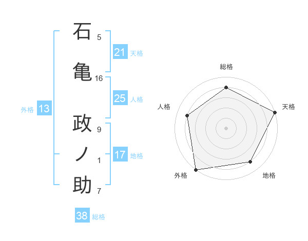 石亀 政ノ助さんを姓名の画数から五運を鑑定