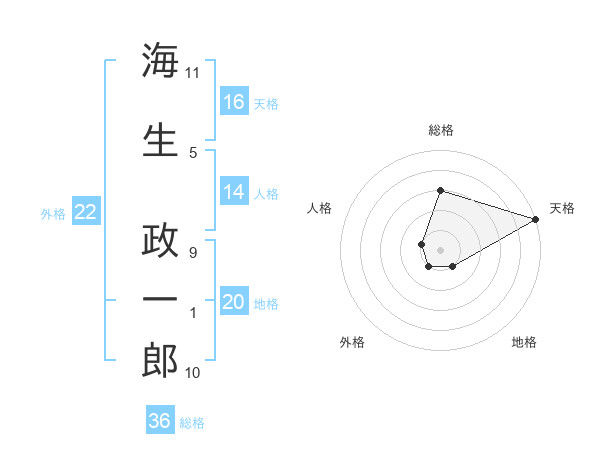 海生 政一郎さんの天格は16画の5点!