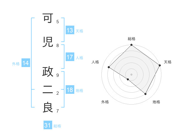 可児 政二良さんの総格は31画の5点!