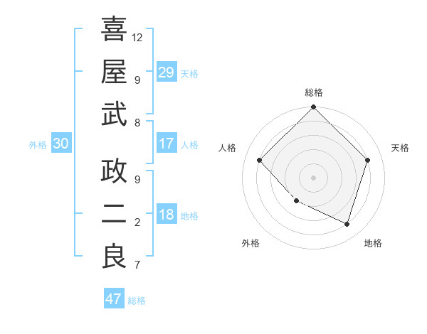 喜屋武 政二良さんを姓名の画数から五運を鑑定