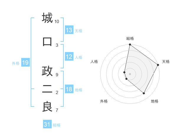 城口 政二良さんの総格は31画の5点!