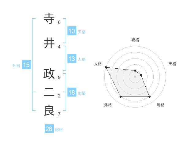 寺井 政二良さんの地格は18画の4点!