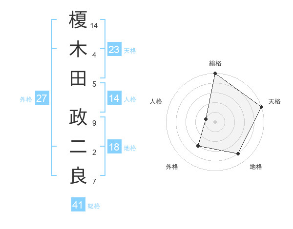 榎木田 政二良さんの総格は41画の5点