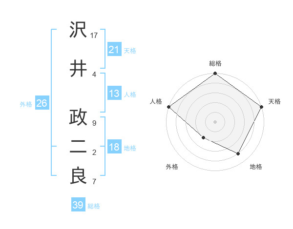 沢井 政二良さんを姓名の画数から五運を鑑定