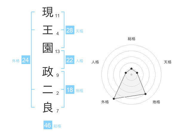 現王園 政二良さんの外格は24画の5点!