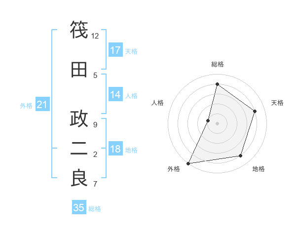筏田 政二良さんを姓名の画数から五運を鑑定