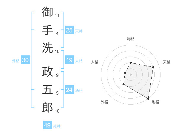 御手洗 政五郎さんの天格は25画の4点!