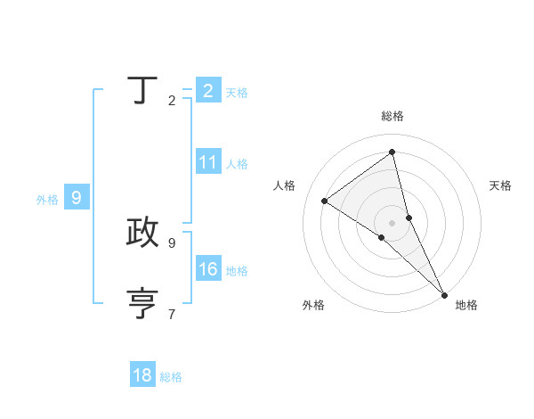丁 政亨さんを姓名の画数から五運を鑑定