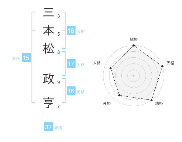 三本松 政亨さんを姓名の画数から五運を鑑定