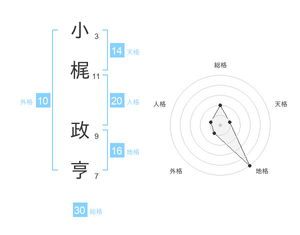 小梶 政亨さんを姓名の画数から五運を鑑定