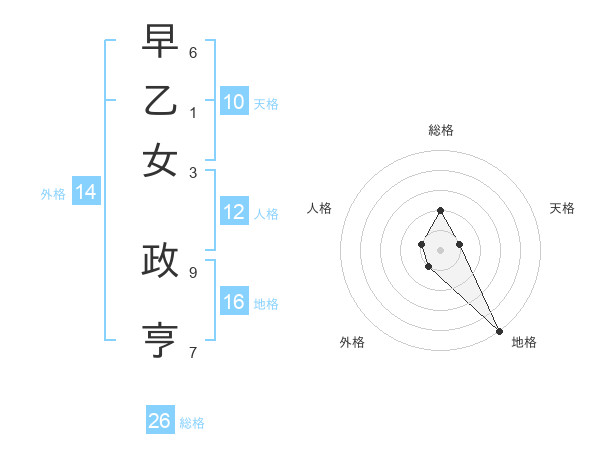 早乙女 政亨さんを姓名の画数から五運を鑑定