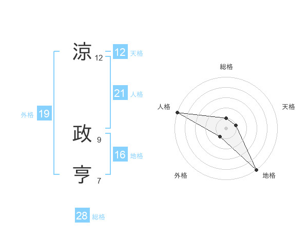 涼 政亨さんの総格は28画の1点!