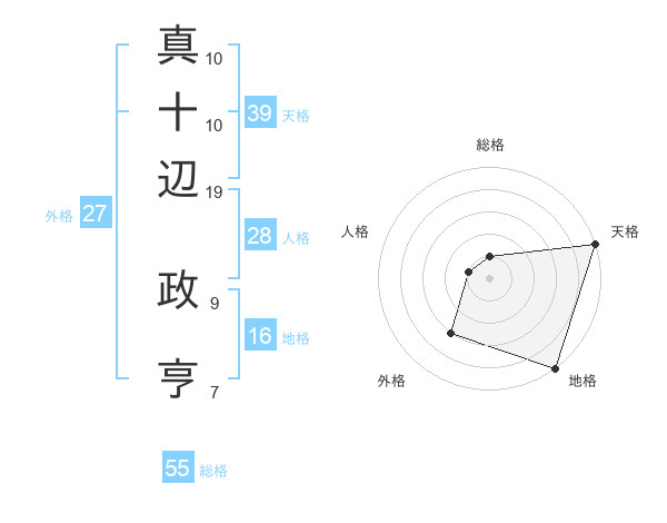 真十辺 政亨さんを姓名の画数から五運を鑑定