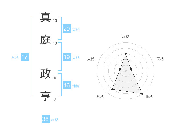真庭 政亨さんの外格は17画の4点!