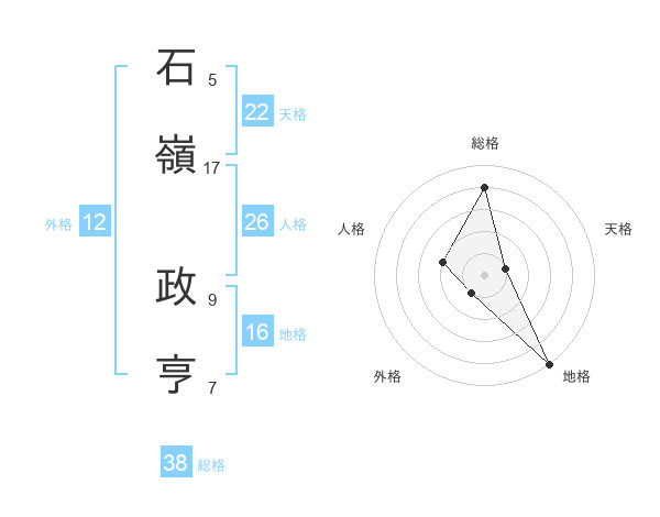 石嶺 政亨さんの総格は38画の4点!