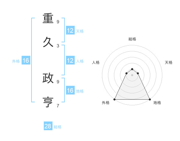 重久 政亨さんの外格は16画の5点!