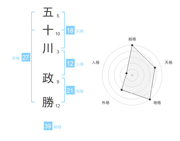 五十川 政勝さんを姓名の画数から五運を鑑定