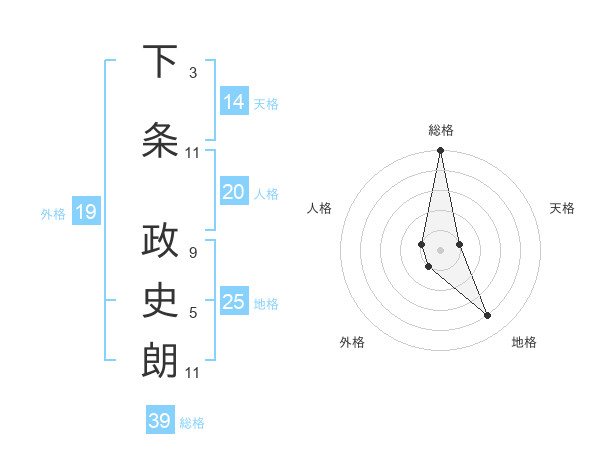下条 政史朗さんを姓名の画数から五運を鑑定