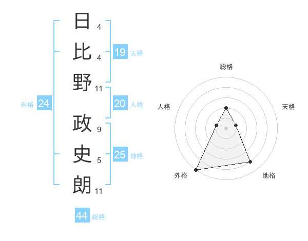 日比野 政史朗さんの外格は24画の5点!