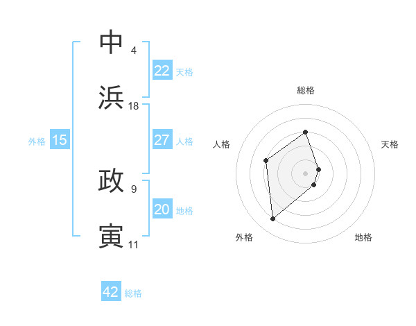 中浜 政寅さんを姓名の画数から五運を鑑定