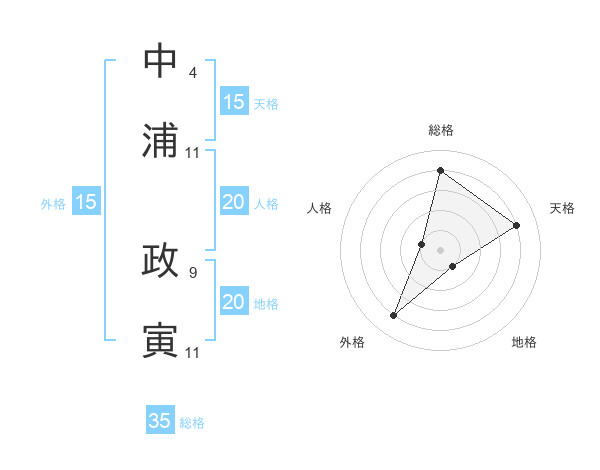 中浦 政寅さんを姓名の画数から五運を鑑定