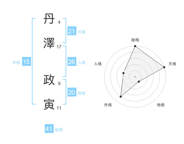 丹澤 政寅さんを姓名の画数から五運を鑑定