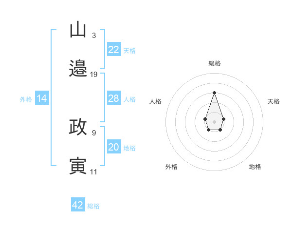 山邉 政寅さんを姓名の画数から五運を鑑定