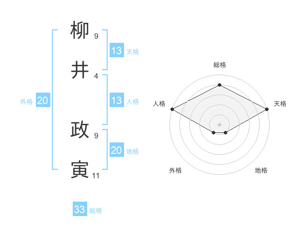 柳井 政寅さんの天格は13画の5点!