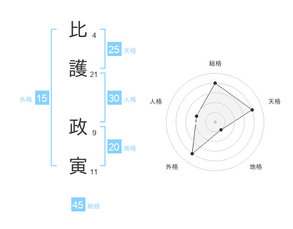 比護 政寅さんの天格は25画の4点!