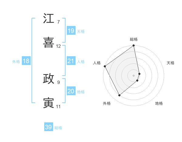 江喜 政寅さんを姓名の画数から五運を鑑定