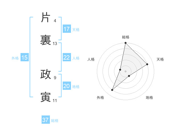 片裏 政寅さんの総格は37画の5点!