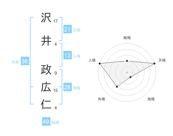 沢井 政広仁さんを姓名の画数から五運を鑑定