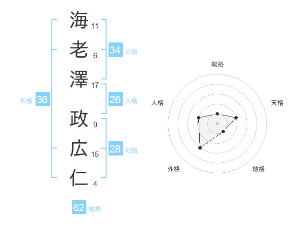 海老澤 政広仁さんを姓名の画数から五運を鑑定