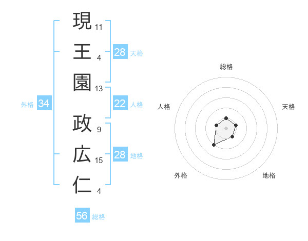 現王園 政広仁さんを姓名の画数から五運を鑑定