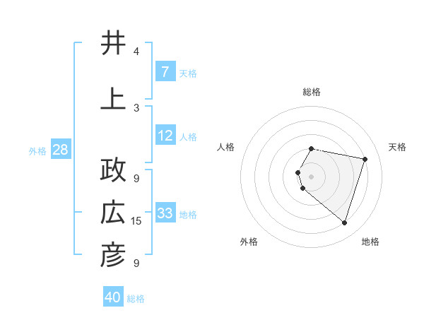 井上 政広彦さんの総格は40画の2点