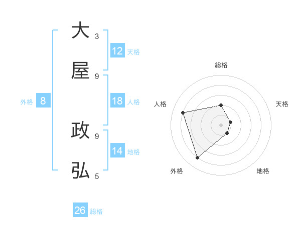 大屋 政弘さんを姓名の画数から五運を鑑定