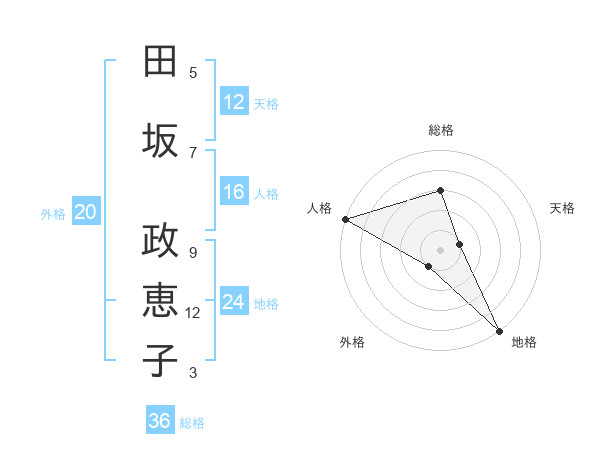 田坂 政恵子さんを姓名の画数から五運を鑑定