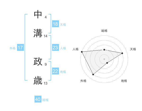 中溝 政歳さんの天格は18画の4点!