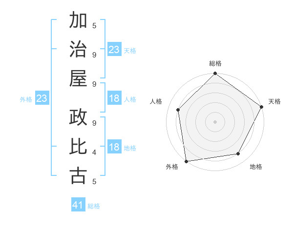 加治屋 政比古さんの総格は41画の5点