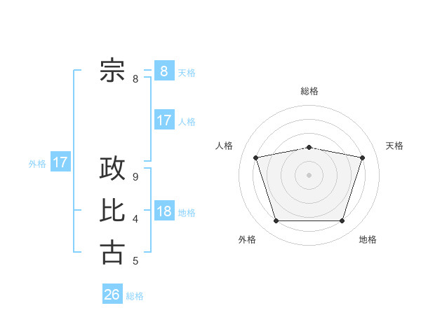 宗 政比古さんの外格は17画の4点!